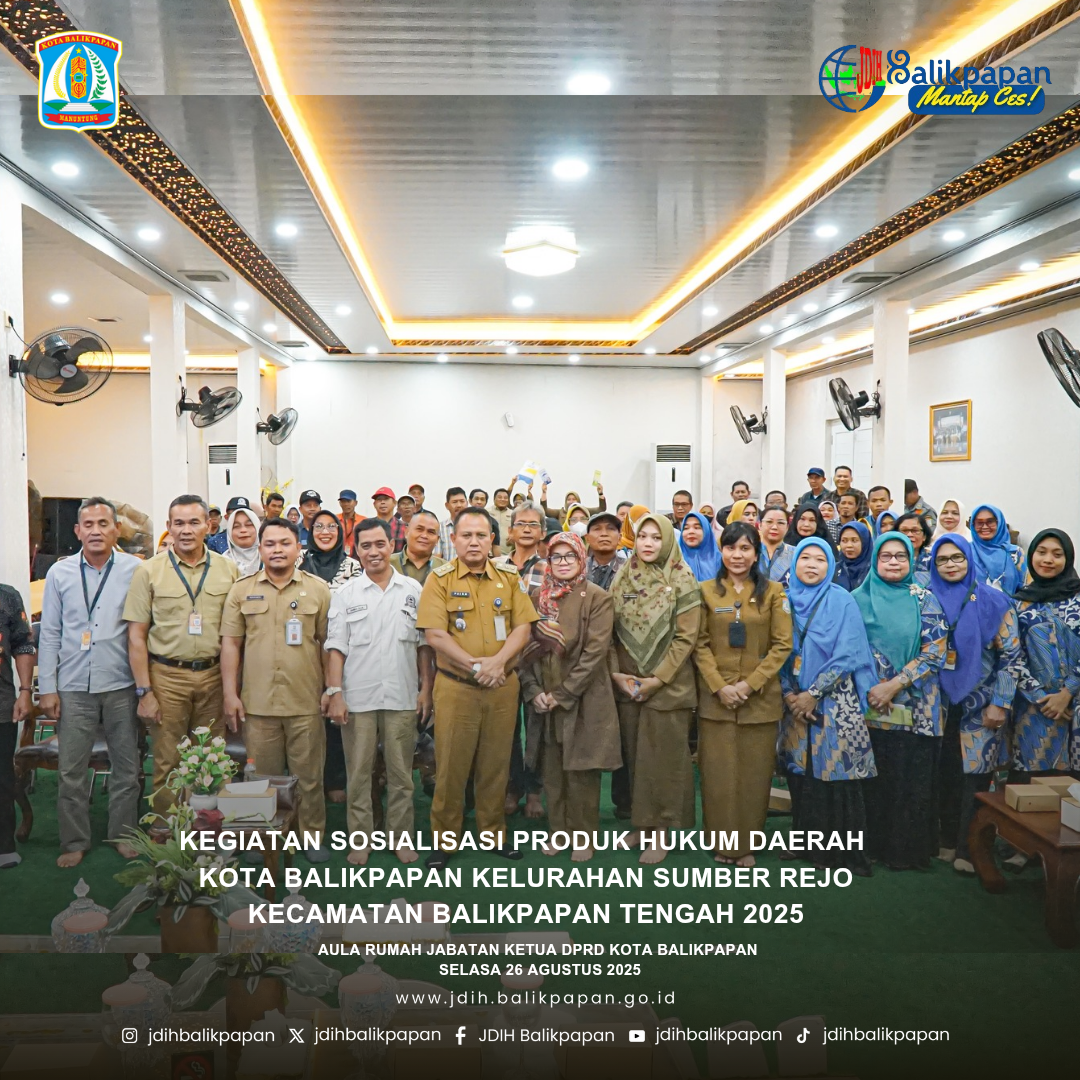 Sosialisasi Produk Hukum Daerah Kota Balikpapan Tahun 2025 di Kelurahan Sumber Rejo, Kecamatan Balikpapan Tengah